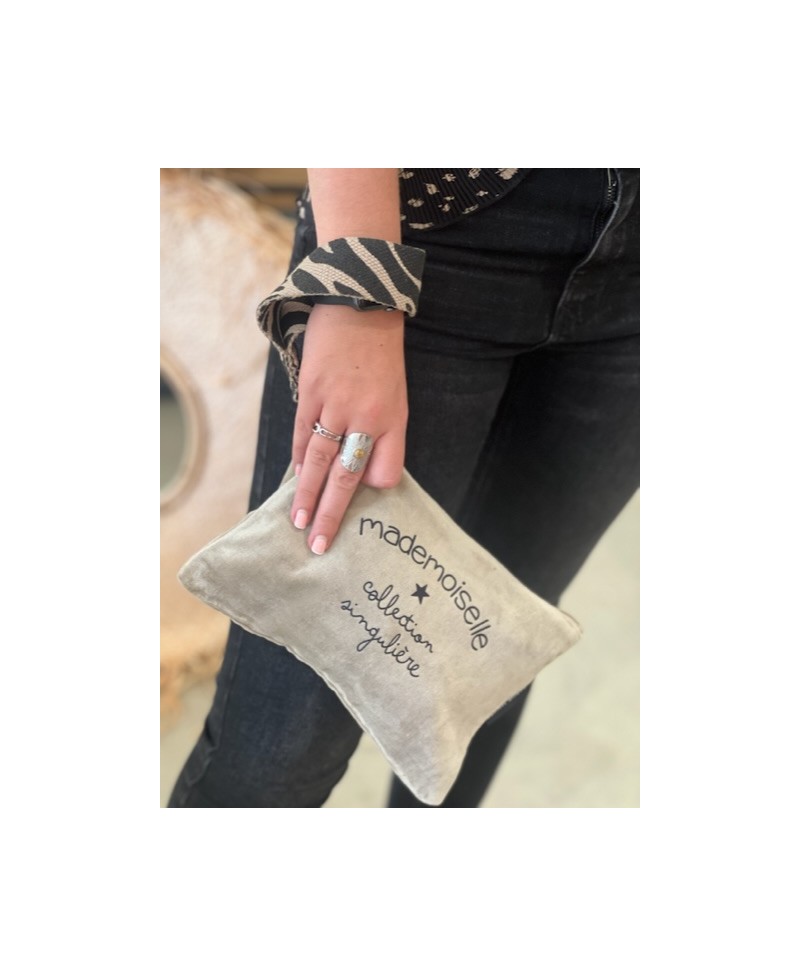 Une jolie trousse en velours aux tons doux et aux coloris élégants et facile à porter à la main grâce à sa anse léopard. Vous pourrez ranger aisément cartes, papiers ou maquillage.