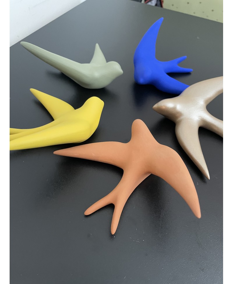 Ces hirondelles en céramique sont fabriquées à la main en France.