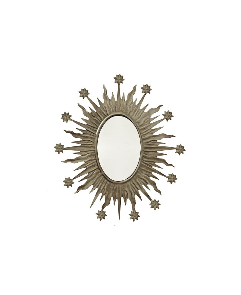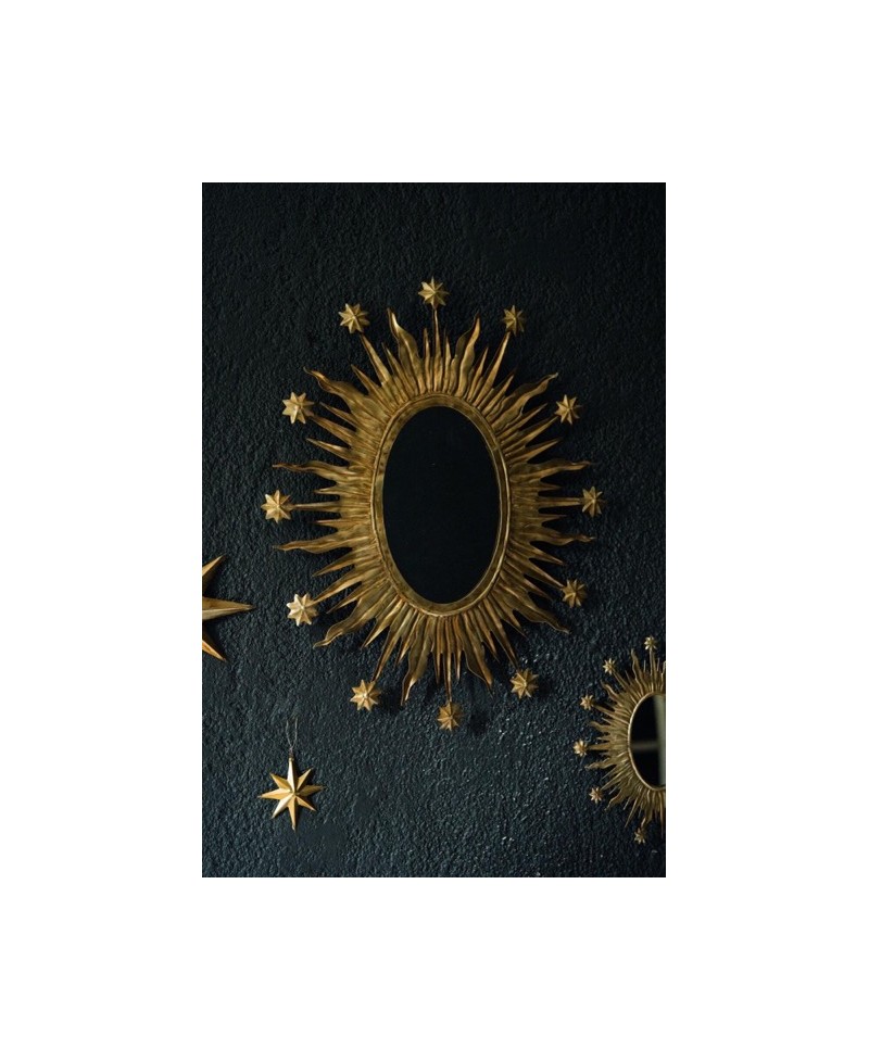 Joli Miroir Céleste forme ovale en métal mordoré tout auréolé d'étoiles.