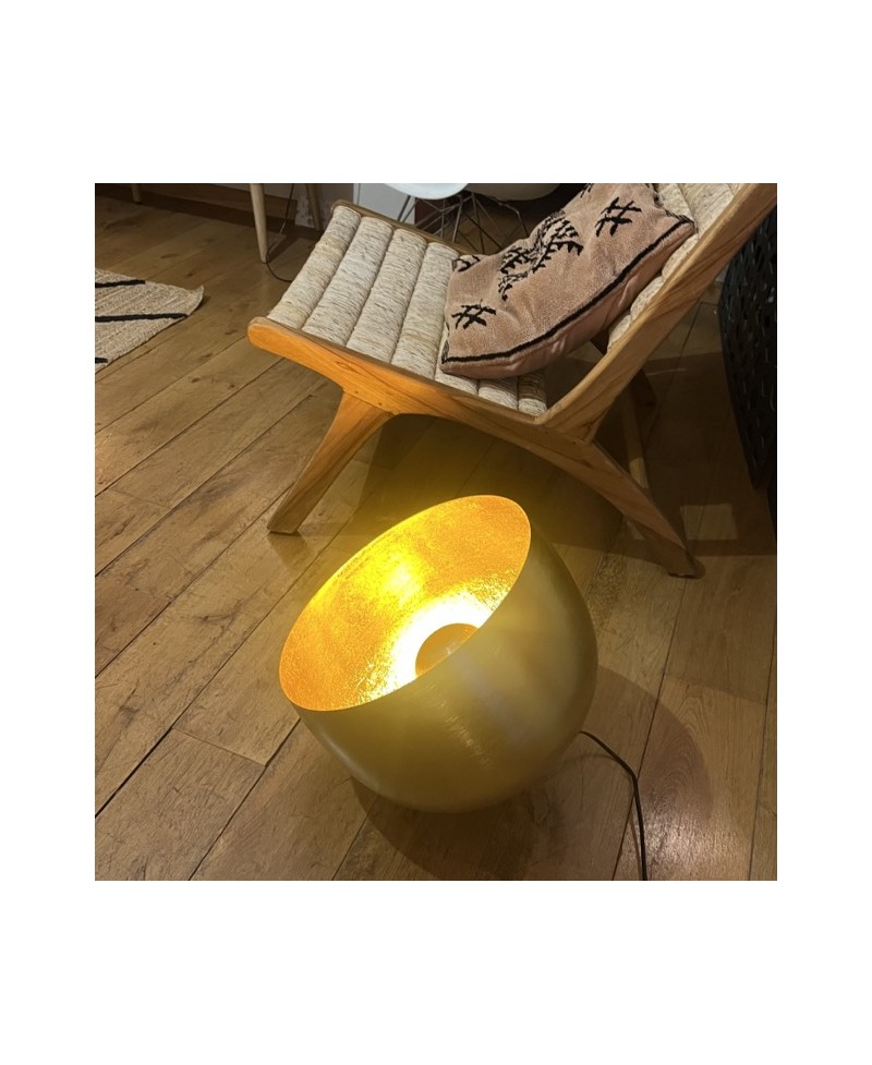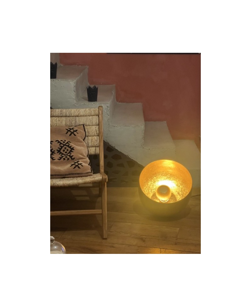 Ajoutez une touche d'élégance à votre espace avec notre lampe à poser au sol ronde en métal doré. Mesurant de 20 à 38 cm, cette lampe incarne l'alliance parfaite entre forme contemporaine et finition texturée en métal doré, créant ainsi un élément visuel saisissant pour votre décoration intérieure.