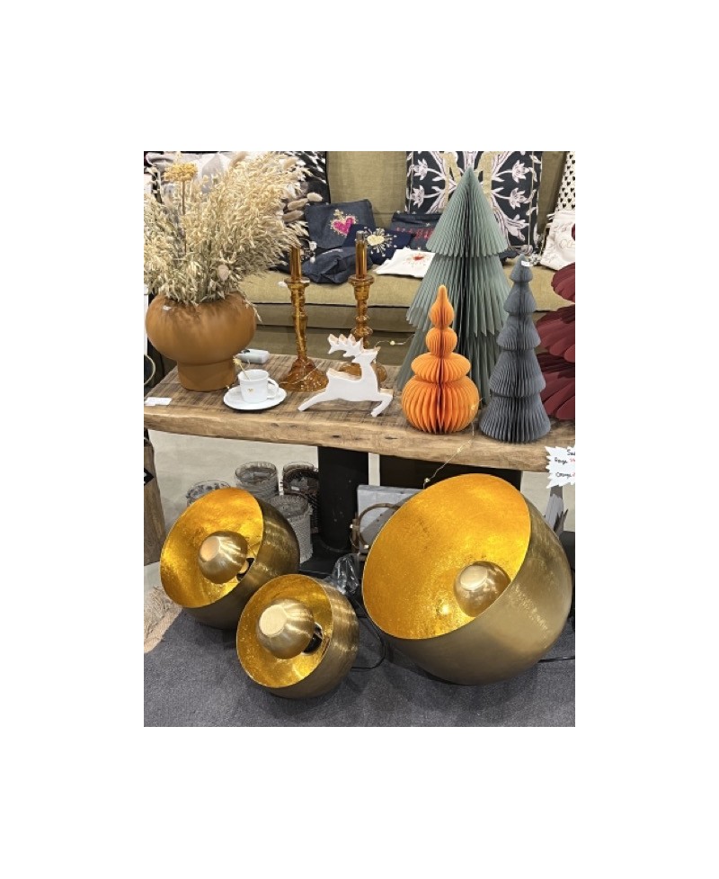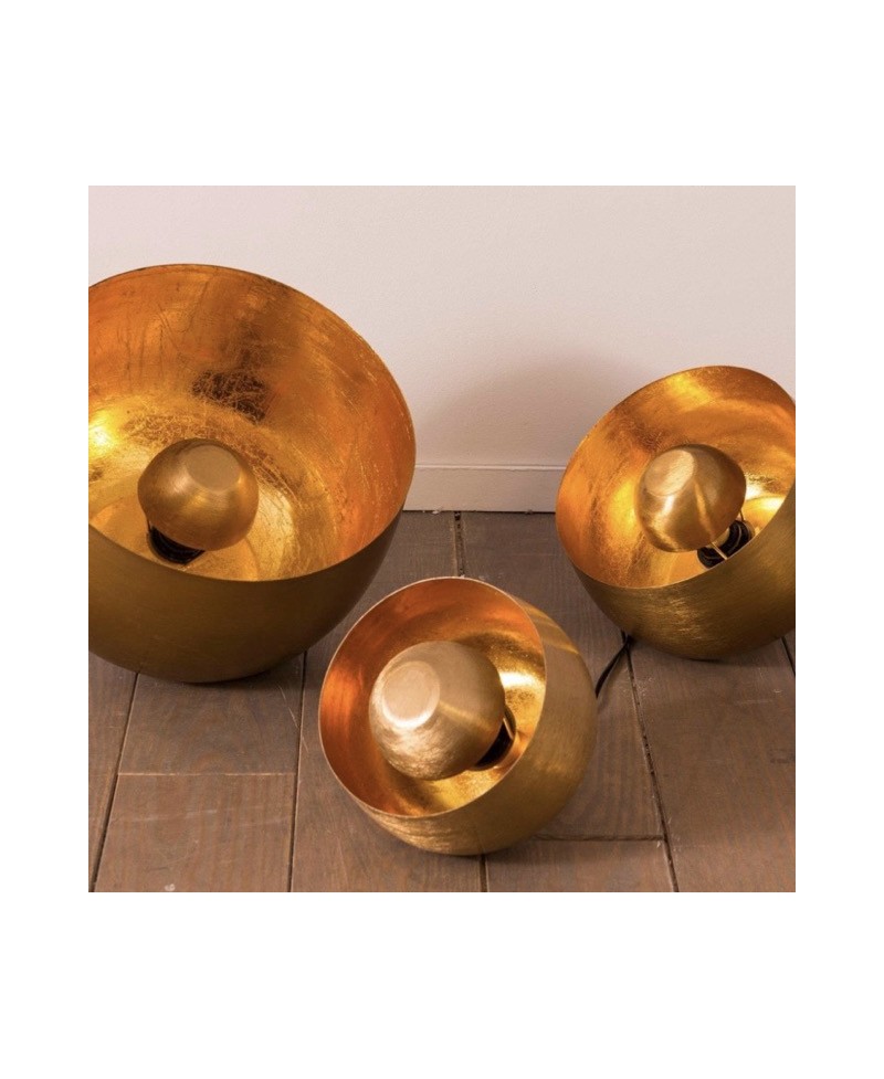 Lampe à poser contemporaine forme ronde en métal doré mat