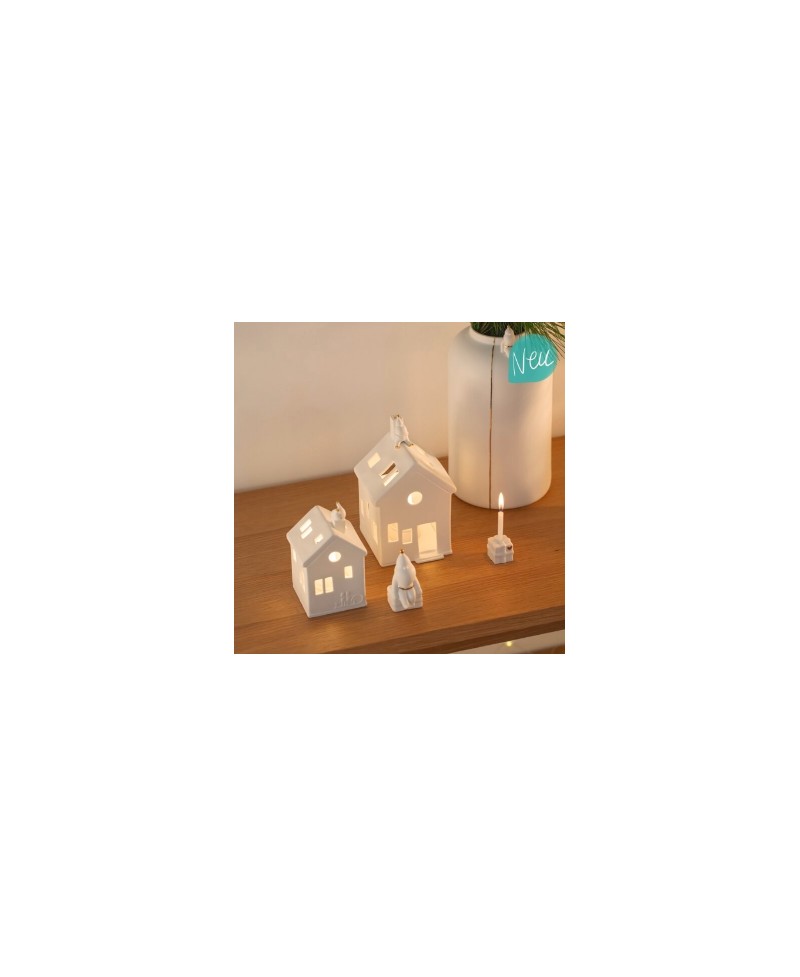 Maison photophore en porcelaine blanche matte