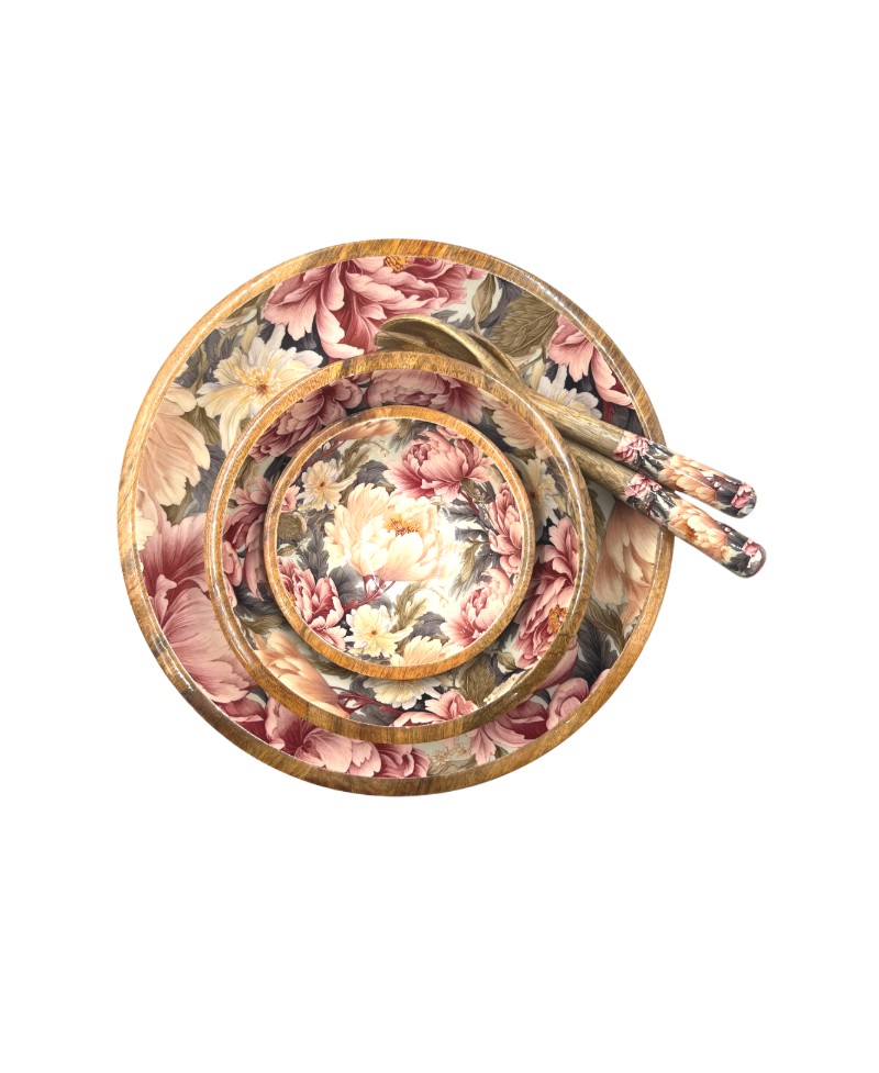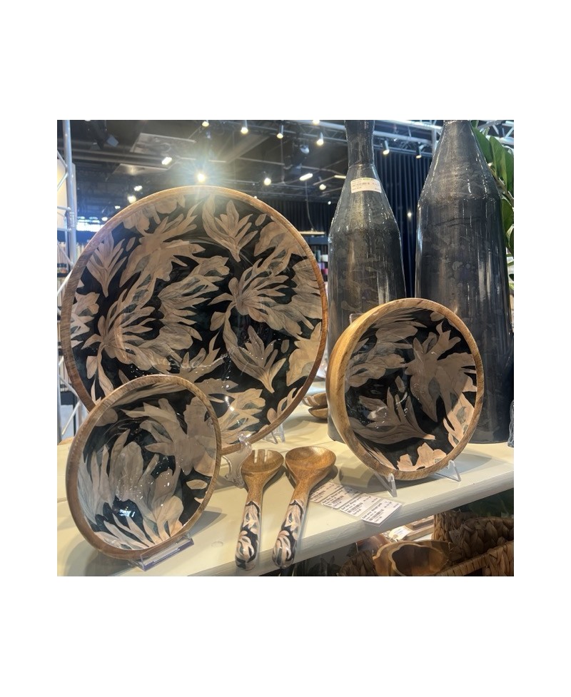 Saladier en manguier massif impression motif gris pour une jolie table ethnique
